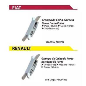 Para veículos FIAT, o grampo é compatível com os modelos Palio 1996 até 2018 , Siena 1996 até 2016 e Strada 1999 até 2019 .
