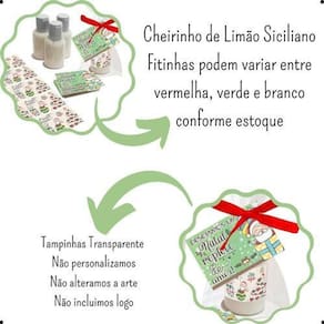 As garrafinhas já vêm cheias, e os rótulos, tags, saquinhos e fitas são enviados separadamente. Escolha a arte e o aroma no momento da compra. Após o pedido, não será possível alterar a opção selecionada.
