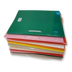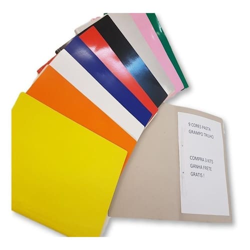 Cores disponíveis azul, amarelo, verde, branco, preto, vermelho, cinza, rosa e laranja Pasta grampo trilho plastico