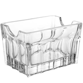 O kit de porta sachês de vidro Dublin da Lyor é projetado para armazenar sachês de condimentos como: chá, açúcar, café, maionese e ketchup. Feito de vidro de alta qualidade, este porta sachê de açúcar possui dimensões de 8 x 5,5 centímetros, o que o torna compacto e adequado para colocação em mesas de jantar, cafeterias, restaurantes e outros espaços gastronômicos. Com um design minimalista, o porta sachê de vidro Dublin é transparente, permitindo que os usuários vejam facilmente os condimentos contidos nele. Sua construção de vidro não apenas proporciona um aspecto estético atraente, mas também facilita a limpeza e manutenção do suporte.