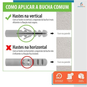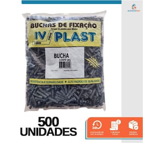 Pacote com 500 Buchas de Fixação Sem Aba 10 mm Iv Plast As buchas são peças fundamentais na fixação de objetos em paredes compactas de tijolo, cimento e concreto. Seu funcionamento é bem simples basta fazer um furo na parede de mesmo comprimento da buchas e em seguida parafusar o objeto desejado. Podendo ser utilizada na fixação de armários, prateleiras, quadros, acessórios de banheiro, varais externos ou internos, etc.Apresenta aletas e braços que fazem a bucha não girar dentro do furo.Produzido em polietileno de alta densidade.Utilizado com parafuso de rosca madeira ou auto-atarrachante. Pacote com 500 unidadesBucha de 10mm Marca: IvplastRef.: 2030209