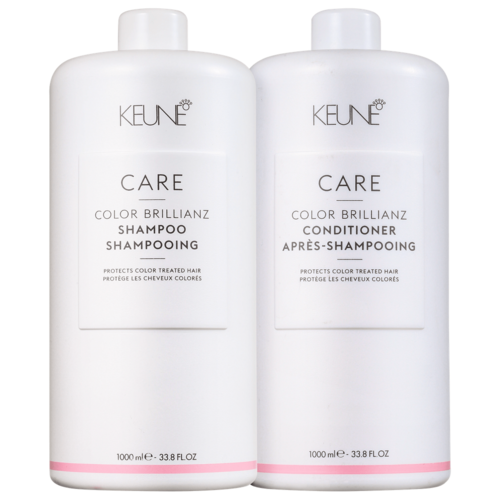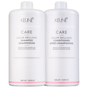 Kit com shampoo e condicionador para cabelos coloridos. Keune Care Color Brillianz Duo Salon oferece cuidado extra manter a cor vibrante por mais tempo.