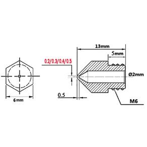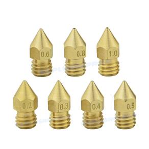 Material: Tamanho de latão: 13mm x 6mm Filamento: Para 1.75mm fialment Diâmetro do parafuso: 6mm diâmetro do bocal 0.2MM 0.3MM 0.4MM 0.5MM 0.6MM 0.8MM 1.0MM para escolher
