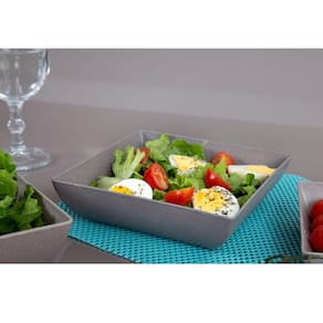 5un Saladeira Quadrada 750ml Travessa Petisqueira Cinza 5un Saladeira Quadrada 750ml Travessa Petisqueira Cinza Bandeja própria para servir lanches, petiscos, frutas e pode ser usada até mesmo para decoração. Feita com um design leve, liso e moderno, essa bela Saladeira possui capacidade de 750ml e são ideais para petiscos refeições do dia-dia como verduras, frutas e até legumes. Fabricado com matéria prima sustentável, proveniente de uma mistura com 69% de materiais de fontes renováveis madeira + Polietileno Verde Im green tm e uma parcela reduzida de polipropileno, além de ser muito prática e com um tamanho ideal para leva à mesa suas saladas, ela colabora para um mundo mais sustentável. Demais características:-dimensão: 15,5cm largura x 15,5cm comprimento x 4,7cm altura - Vai à lava louça;- Microondas de 2 a 3 minutos - Produto atóxico;