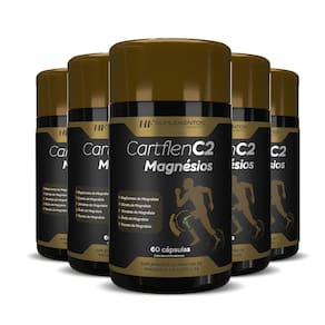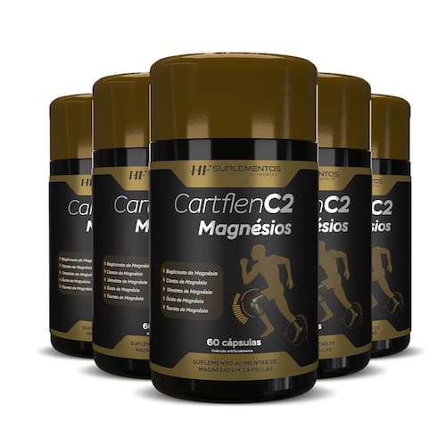 Através deste anúncio, você está adquirindo 5 cinco potes de 5x cartflen c2 5 tipos de magnésios 60 caps hf suplementos.