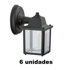 Arandela Injetada em Termoplástico de Engenharia - Preto-- 6 unidades --A arandela colonial em termoplástico é especial para usar em ambientes externos. Como possui proteção UV, ela resiste muito bem as ações do tempo.Uso Externo ou InternoDescrição:- Cor: Preto- Material: termoplástico injetado- Medidas: A 17,5cm x L 10,5cm x C 10,5cm - Proteção UV - Não desbota ou fica quebradiço ao longo do tempo.- Não enferruja- Soquete porcelana: E27 bocal comum - Tensão: 127/220v - BIVOLT- Potência máxima: 20 W- Corrente: 4 ALâmpada não inclusa