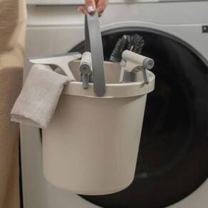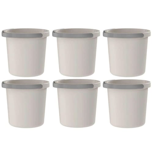 6 Baldes Flow Bege para Limpeza com Bico Direcionador e Alça Anatômica Ou Lavanderia.