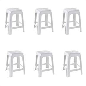 6 Banquetas Banco Plástico Resistente Branco Empilhável 46Cm