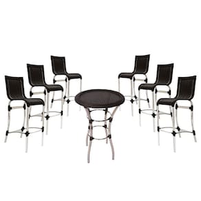6 Banquetas Haiti E Mesa Bistrô Em Alumínio Para Cozinha, Área, Edícula, Piscina Trama - Marrom Cacau
