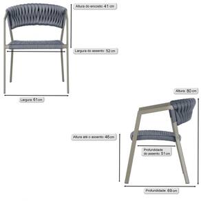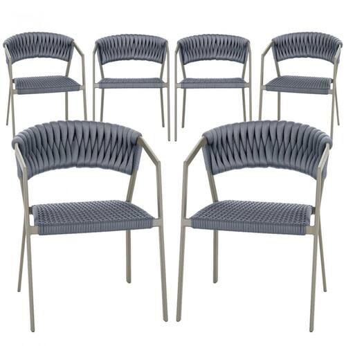 6 Cadeiras Atenas Tricô Náutico e Alumínio com Proteção UV para Varanda, Cozinha, Área, Jardim - Prata