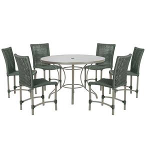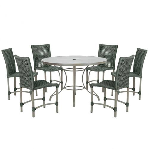 6 Cadeiras Cannes Corda Náutica e Mesa com Tampo Ripado 1,20m em Alumínio para Jardim, Varanda, Cozinha, Piscina - Verde