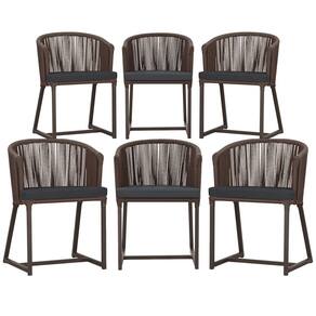 6 Cadeiras de Jantar Área Noronha em Alumínio - Marrom Escuro
