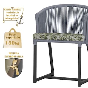 Combinando estilo e resistência, esta cadeira traz o melhor do design contemporâneo em alumínio com micro pintura e acabamento em corda náutica. O estofado impermeável completa o conforto e a funcionalidade, tornando-a ideal para ambientes externos e internos.
