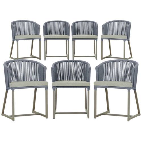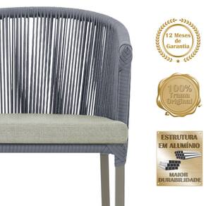 Combinando estilo e resistência, esta cadeira traz o melhor do design contemporâneo em alumínio com micro pintura e acabamento em corda náutica. O estofado impermeável completa o conforto e a funcionalidade, tornando-a ideal para ambientes externos e internos.