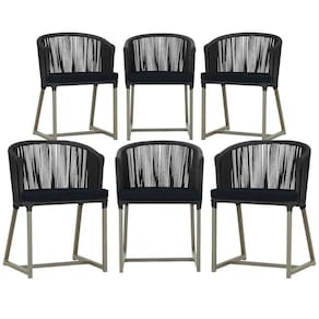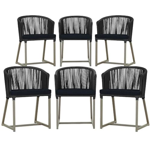 6 Cadeiras De Jantar Noronha Fendi Corda Náutica E12 Trama Preto
