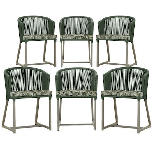 6 Cadeiras De Jantar Noronha Fendi Corda Náutica E5 Trama Verde