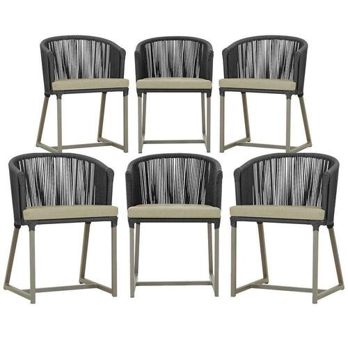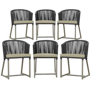 6 Cadeiras De Jantar Noronha Fendi Corda Náutica E7 Trama Preto