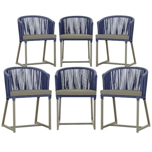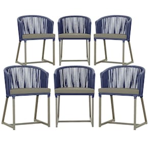 6 Cadeiras De Jantar Noronha Fendi Corda Náutica E8 Trama Azul