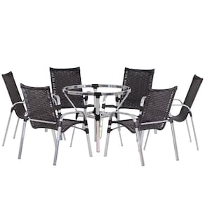 6 Cadeiras Emily E Mesa Adaptada Em Alumínio Pedra Ferro ,