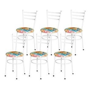 6 Cadeiras Epoxi Branca Para Cozinha Assento Floral Cor:happy Hour