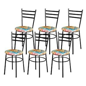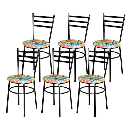 6 Cadeiras Epoxi Preta Para Cozinha Assento Floral Cor:happy Hour