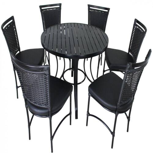 6 Cadeiras JK e Mesa com Tampo Ripado em Alumínio para Área, Jardim e Piscina Trama - Marrom Escuro