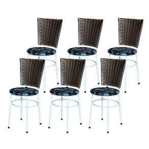 6 Cadeiras Para Mesa Branca Hawai Marrom Assento Floral Cor:floral Preto