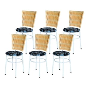6 Cadeiras Para Mesa Branca Hawai Palha Assento Floral Preto