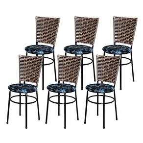 6 Cadeiras Para Mesa Preta Hawai Avelã Assento Floral Cor:floral Preto