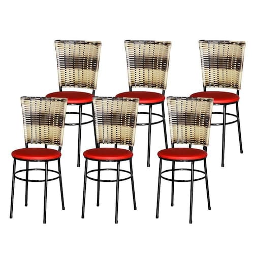 6 Cadeiras Para Mesa Preta Hawai Cappuccino Premium Cor:vermelho