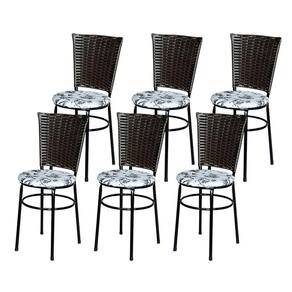 6 Cadeiras Para Mesa Preta Hawai Marrom Assento Floral Cor:floral Branco
