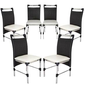6 Cadeiras Veneza Fibra Sintética Preto Alumínio Polido Com Assento Estofado Branco