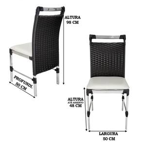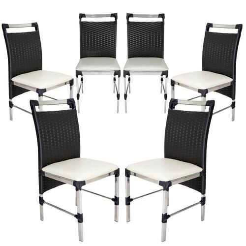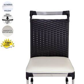 6 Cadeiras Veneza Fibra Sintética Cor Preto Alumínio Polido Com Assento Estofado Branco