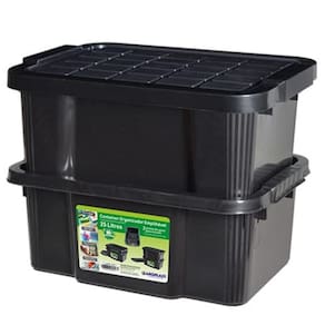 6 caixa organizadora multiuso preta 15l empilhável com tampa Container organizador empilhavel 15 lts - primeira moagem