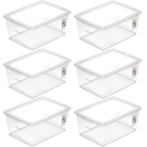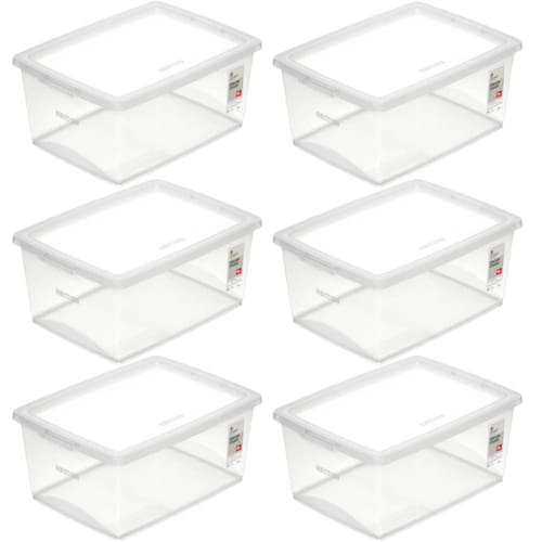 Conteúdo: 6 caixas organizadoras de plástico 15L.