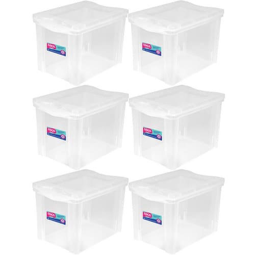 6 Caixas Organizadoras Plásticas Média Alta 30L Ordene Transparentes Radical Color.