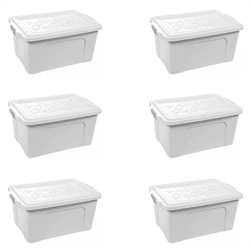 6 Caixas Organizadoras Reforçadas Container 70 Litros Branca