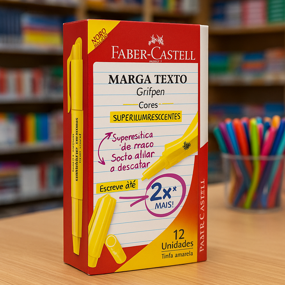 MARCA TEXTO AMARELO FLUORESCENTE FABER-CASTELL – KIT COM 6 UNIDADES (REF. MT-AMZF) O Marca Texto Faber-Castell é indicado para destacar informações em textos impressos ou escritos à mão, auxiliando na organização e na leitura de conteúdos. Possui tinta fluorescente na cor amarela, que proporciona boa visualização sem comprometer a legibilidade do texto. A embalagem contém 6 unidades, sendo uma opção prática para uso frequente em atividades de leitura, estudos e organização de materiais. CARACTERÍSTICAS DO PRODUTOMarca: Faber-Castell Modelo/Referência: MT-AMZF Tipo: Marca texto Cor da tinta: Amarelo fluorescente Quantidade: Kit com 6 unidades Corpo em formato confortável para manuseio Tampa com encaixe seguro INDICAÇÃO DE USODestaque de textos em livros, cadernos e apostilas Organização de estudos e leituras Uso em casa, escola ou ambientes de estudo