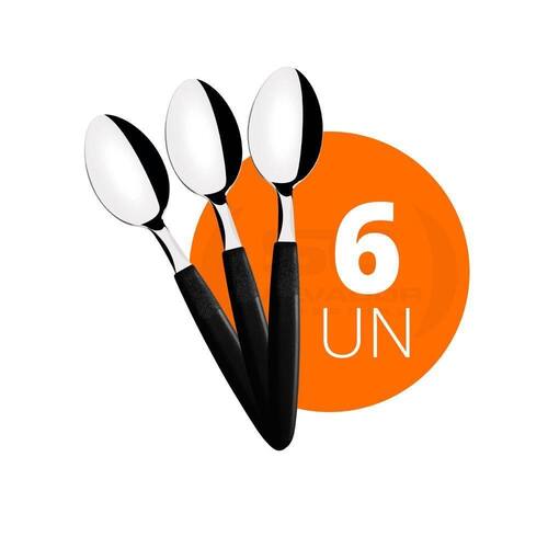 6 colheres de sobremesa ipanema com lâmina em aço inox cabo preto csptop - tramontina 23366400