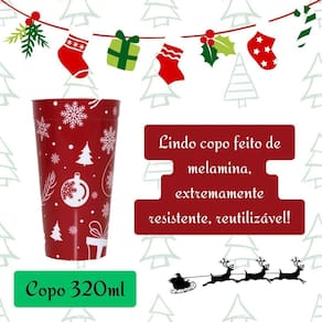 Este copo com estampa natalina é perfeito para trazer o espírito festivo para suas bebidas favoritas. Feito de melamina resistente, ele apresenta um design encantador com elementos clássicos do Natal, como flocos de neve, enfeites natalinos e árvores de Natal, tudo em uma cor vibrante que evocam a magia da temporada.