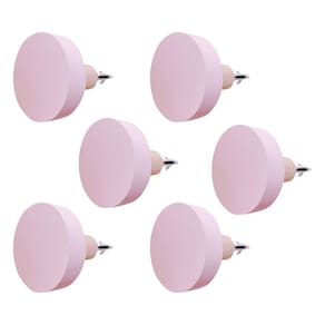 A face vai colada com super cola e acaba sendo apenas decorativa, pois é o suporte quem recebe o esforço, suportando até 5 Kg. Anúncio se refere à 6 unidades; Modelo: Bola; Tamanho de face: 6,0 cm; Material: MDF laminado 15mm melamínico Cor: Rosa bebê (rosê nude, rosinha, rosa milkshake)