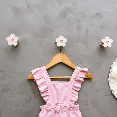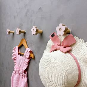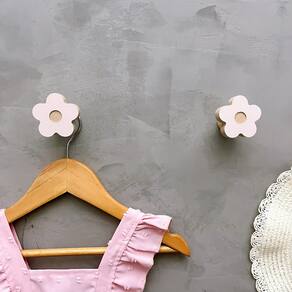A face vai colada com super cola e acaba sendo apenas decorativa, pois é o suporte quem recebe o esforço, suportando até 5 Kg. Anúncio referênte à 6 unidades. Modelo: Flor Tamanho da face: 5,0cm X 5,0cm; Material: MDF laminado 15mm melamínico | borda cru Cor: Rosa, Azul, Branco e Cinza
