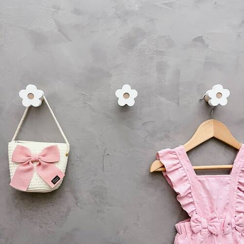 A face vai colada com super cola e acaba sendo apenas decorativa, pois é o suporte quem recebe o esforço, suportando até 5 Kg. Anúncio referênte à 6 unidades. Modelo: Flor Tamanho da face: 5,0cm X 5,0cm; Material: MDF laminado 15mm melamínico | borda pintada Cor: Rosa, Azul, Branco e Cinza