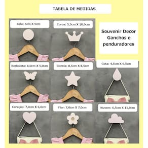 Modelo: Bola, Borboleta, Coração, Coroa, Estrela, Flor, Gota e Nuvem;