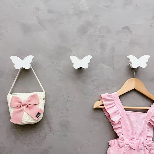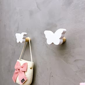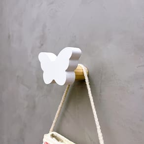 A face vai colada com super cola e acaba sendo apenas decorativa, pois é o suporte quem recebe o esforço, suportando até 5 Kg. Anúncio referênte à 6 unidades. Modelo: Borboleta Tamanho da face: 6,0cm X 4,0cm; Material: MDF laminado 15mm melamínico | borda pintada Cor: Rosa, Azul, Branco e Cinza