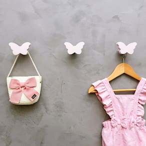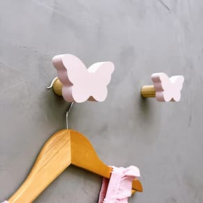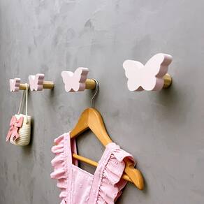 A face vai colada com super cola e acaba sendo apenas decorativa, pois é o suporte quem recebe o esforço, suportando até 5 Kg. Anúncio referênte à 6 unidades. Modelo: Borboleta Tamanho da face: 6,0cm X 4,0cm; Material: MDF laminado 15mm melamínico | borda pintada Cor: Rosa, Azul, Branco e Cinza