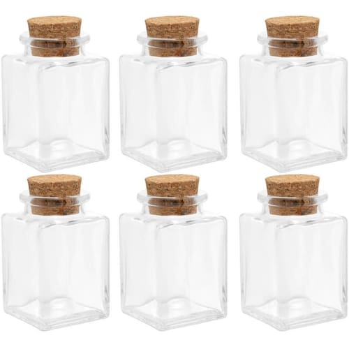 6 Mini Potes de Vidro Porta Temperos com Tampa de Rolha Lyor Quadrados Lembrancinha.