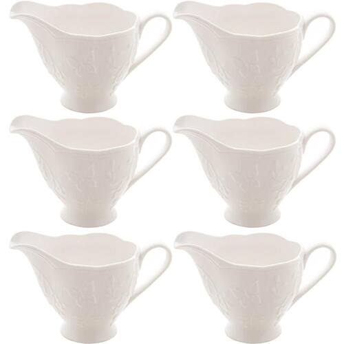 6 Porta Molhos Porcelana New Bone Branca 200ml Lyor Molheiras para Caldas Butterfly Flowers.