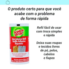 Usar o refil rolo adesivo scotch-brite tira pelos é extremamente fácil basta retirar a capa protetora e deslizar o rolo adesivo sobre a superfície a ser limpa. Quando a folha adesiva perder seu poder de adesão, basta remover apenas uma volta até chegar ao próximo pacote.