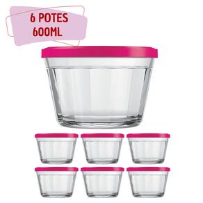 6 Tigela De Vidro Americano C/ Tampa Cereal Biscoitos 600ml